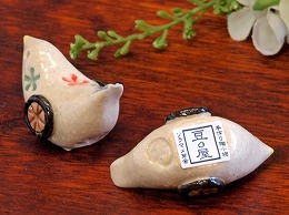 豆屋の陶器は1つ1つが手作りです。手作りならではの、ぬくもりと可愛さ♪ 楽しく、話題性のある箸置きが、美味しい料理への期待をふくらませてくれます。 また、箸置きの実用性だけでなく、小さい置物としてもほっと心和む動物モチーフです。 |