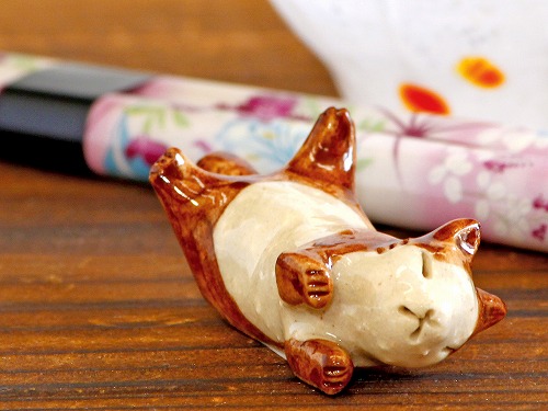 ソラマメ商会 豆屋 箸置き(ねこ ねじり足上げ ハラシロ濃茶) | ||||||||||||||||||