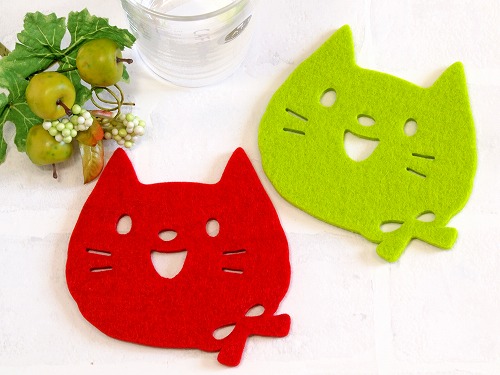 優しい雰囲気のフェルト素材! のんびりお茶の時間を可愛いネコと一緒に♪ギフトにも最適です。 |