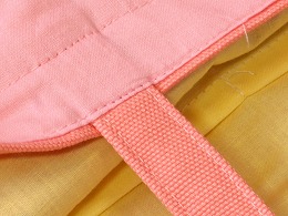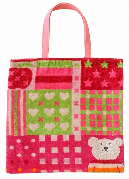 キルトをモチーフにした、色彩豊かで、ほのぼの愛らしいデザイン♪ おけいこバックやちょっとしたお出かけにどうぞ!大人の方にもおすすめのデザインです。 背面と持ち手部分は帆布生地を使用しています。マチなしのフラットタイプの手提げです。 |