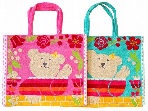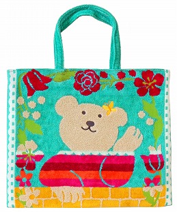 ちょっぴり首をかしげたレインボーベアがとっても可愛い♪ 持ち手もタオル地で柔らかく、お子様も安心して使えます。 おけいこバックやちょっとしたお出かけにどうぞ! |