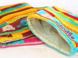刺繍のステッチをイメージした柄は、まるで可愛い手芸屋さんに居るみたい! ふわふわで自由自在の巾着だからバッグの中で、きちんと収納♪整理整頓に役立ちます。 |