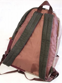無地とチェックの組み合わせ、色合わせもおしゃれなリュック。正面のファスナーポケットの他に、 両サイドにもポケットが付いてます。背負ったまま中身が取り出せるサイドファスナー付。 |