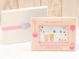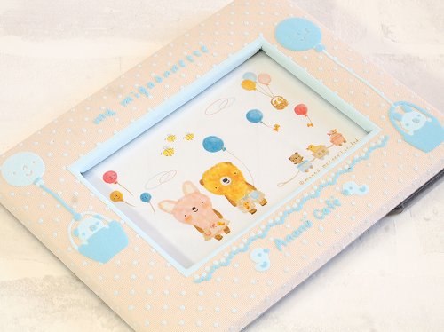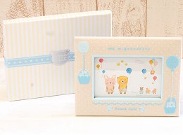 可愛いベビーの写真を可愛いフレームに入れると可愛さ満点♪ リネン生地にパステルカラーのぷっくりプリント、優しい印象が赤ちゃんにピッタリのフレームです。 黄色と白のストライプがキュートなギフトBOX入りです。写真サイズは89×127mmまでです。 |