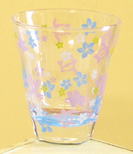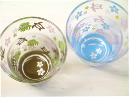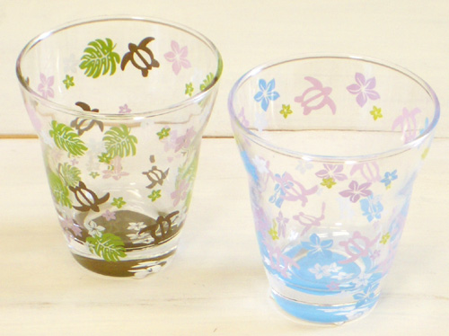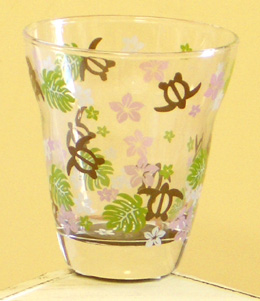 海の守り神ホヌ(海ガメ)とトロピカルな花がとってもキュートなグラスです。