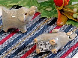 豆屋の陶器は1つ1つが手作りです。手作りならではの、ぬくもりと可愛さ♪ 楽しく、話題性のある箸置きが、美味しい料理への期待をふくらませてくれます。 また、箸置きの実用性だけでなく、小さい置物としてもほっと心和む動物モチーフです。 |