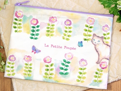 プティット・プペ ペタンコポーチ(お花畑 ネコ柄) | |||||||||||||||||